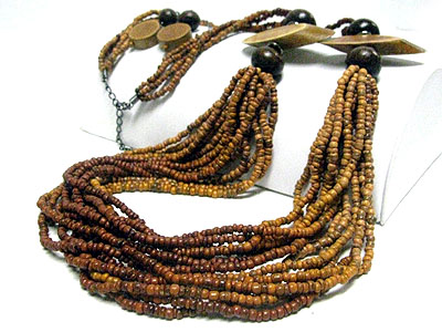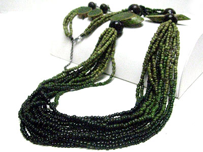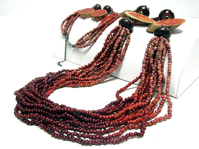 WHOLESALE MULTI STRAND GRADIENT SEED BEADS AND WOOD JOINT LONG NECKLACE SET 347597