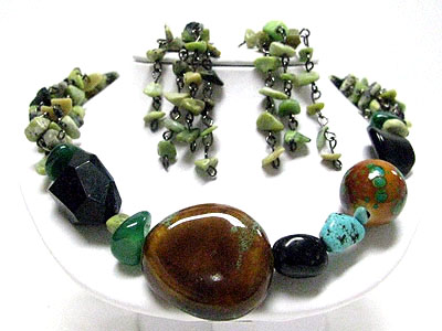 WHOLESALE NATURAL STONE AND CERAMIC NUGGET NECKLACE SET 347607
