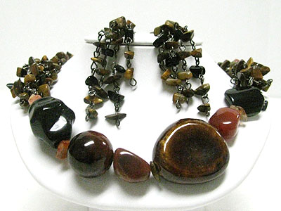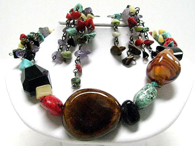 Natural stone and ceramic nugget necklace set