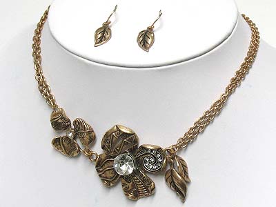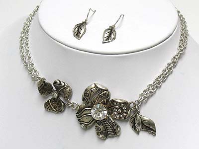 WHOLESALE CRYSTAL AND METAL FILIGREE FLOWER PENDANT NECKLACE AND EARRING SET 347628
