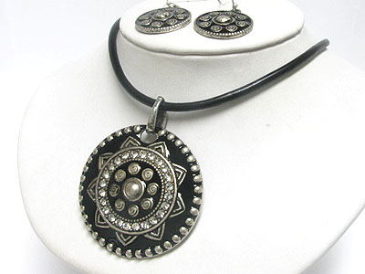 WHOLESALE CRYSTAL ACCENT ROUND SUN PENDANT CORD NECKLACE EARRING SET 347629