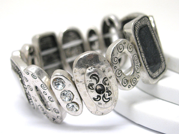 WHOLESALE CRYSTAL STUD TRI TONE METAL STRETCH BRACELET 347649