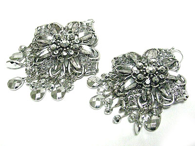 WHOLESALE METALLIC STONE FLOWER AND FACET BEADS DROP EARRING 347734