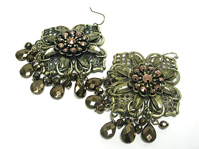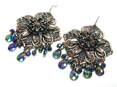 Metallic stone flower and facet beads drop earring