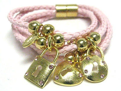 Tutti frutti crystal stud lock charm braided cord magnetic clasp bracelet