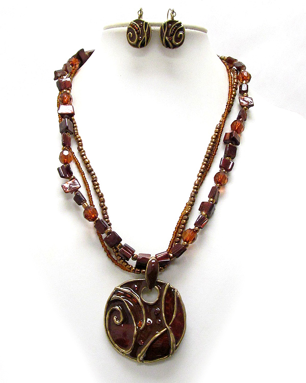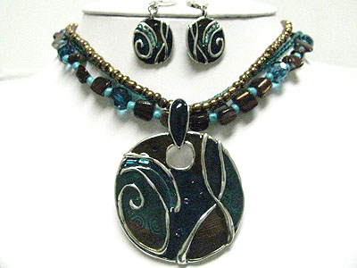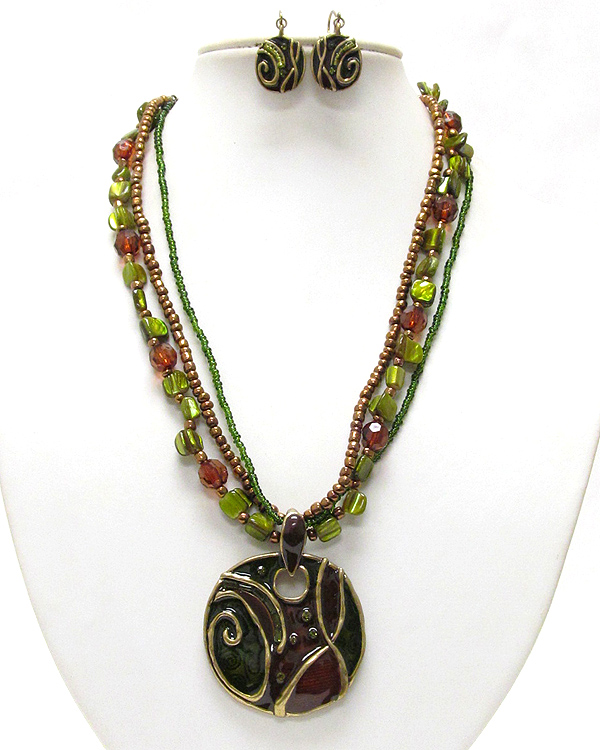WHOLESALE EPOXY METAL ART WORK ROUND PENDANT MULTI BEADS NECKLACE SET 347784