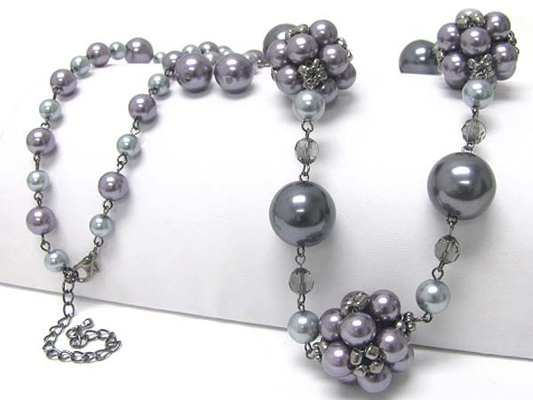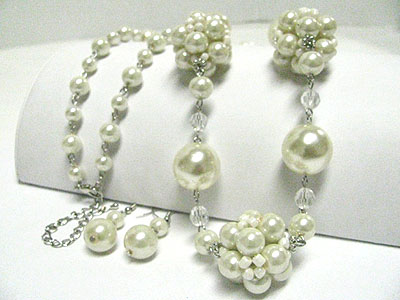 WHOLESALE PEARL BALL CLUSTER LINK LONG NECKLACE SET 347796