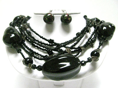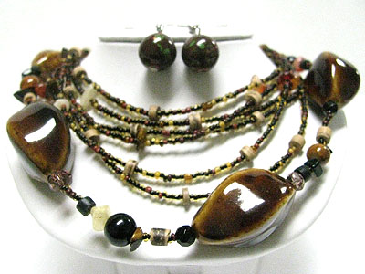 WHOLESALE MULTI STRAND SEED BEADS AND CERAMIC STONE NECKLACE SET 347856