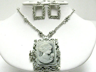 WHOLESALE CRYSTAL AND METAL FILIGREE CAMEO LOCKET PENDANT NECKLACE SET 347861