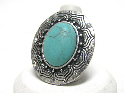 Large natural stone and crystal deco oval stretch ring