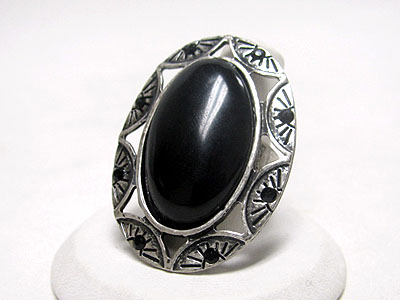 WHOLESALE LARGE NATURAL STONE AND CRYSTAL DECO OVAL STRETCH RING 348171