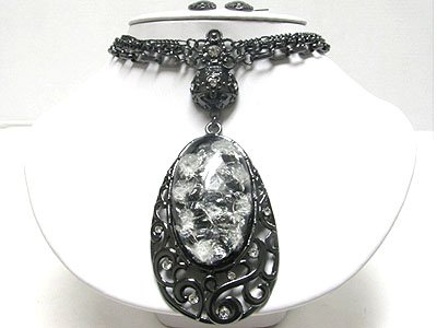 Boutique quality glass art works oval pendant multi chain necklace set