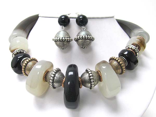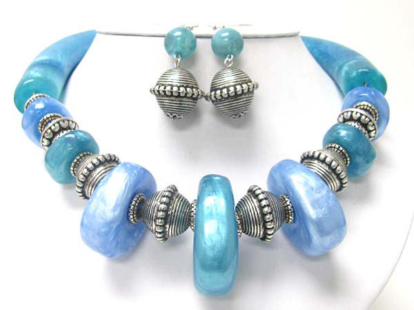 WHOLESALE ETHNIC STYLE HORN AND CHUNKY BEADS NECKLACE EARRING SET 348191