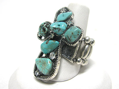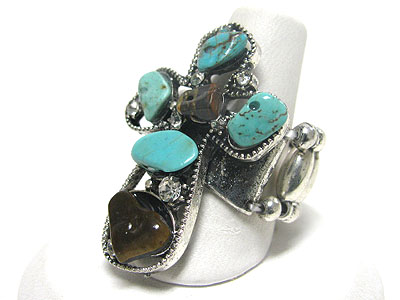 Natural stone and crystal design cross stretch ring