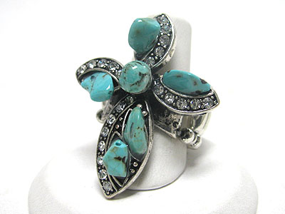Natural stone and crystal design cross stretch ring