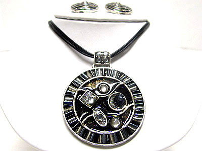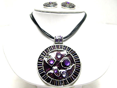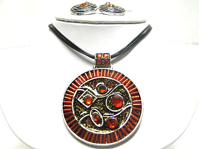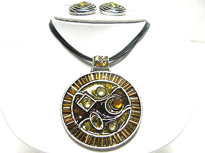 WHOLESALE GLASS AND BEADS DECO METAL ART MEDALLION AND CORD NECKLACE SET 348273