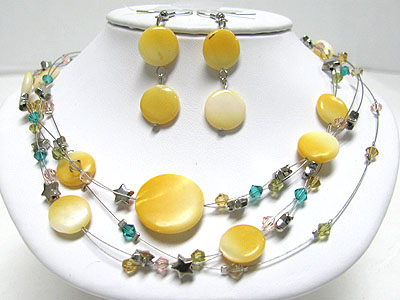 Sea shell disk and beads multi strand necklace set