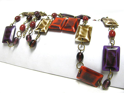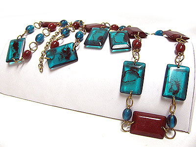 Rectangle resin and acryl stick link long necklace set