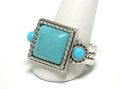 Square shape natural stone adjustable size fashion ring