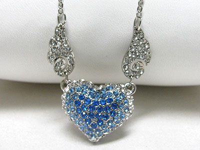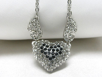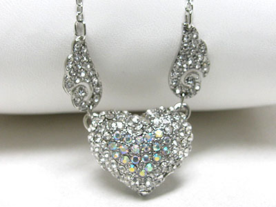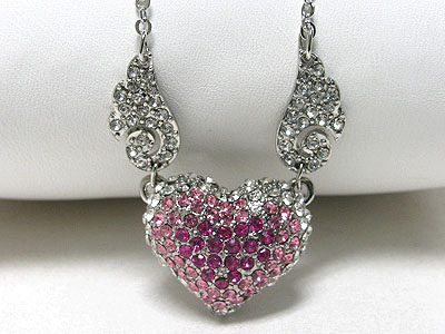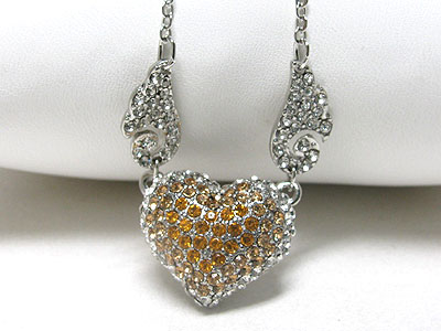 WHOLESALE CRYSTAL PUFFY FLYING HEART CHARM LINK NECKLACE 348381