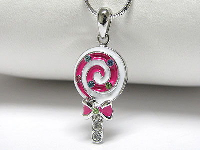 WHOLESALE WHITEGOLD PALTING CRYSTAL AND EPOXY MINIATURE LOLLIPOP PENDANT NECKLACE 348556