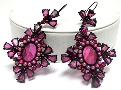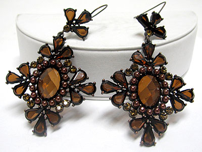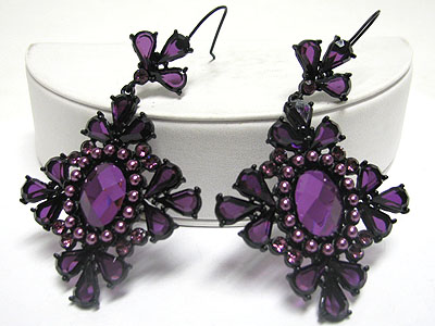 WHOLESALE BOUTIQUE QUALITY CRYSTAL AND FACET GLASS DECO RHOMBUS FLOWER DROP EARRING 348632