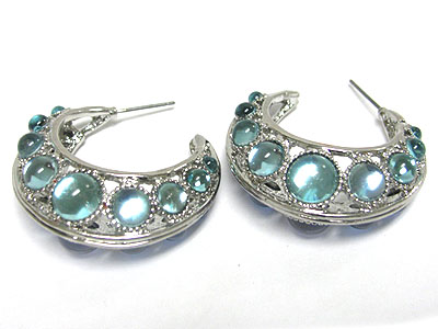 WHOLESALE GLASS STONE METAL HOLLOW EARRING 348640