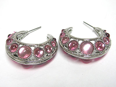 Glass stone metal hollow earring
