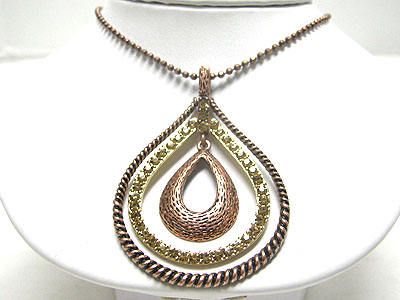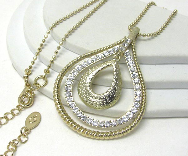 WHOLESALE CRYSTAL DECO TRIPLE METAL TEAR DROP LONG NECKLACE 348724