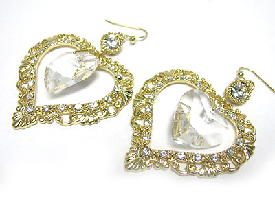 WHOLESALE CRYSTAL STUD FRAME AND FACET HEART DROP EARRING 348768