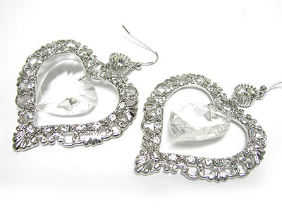 Crystal stud frame and facet heart drop earring