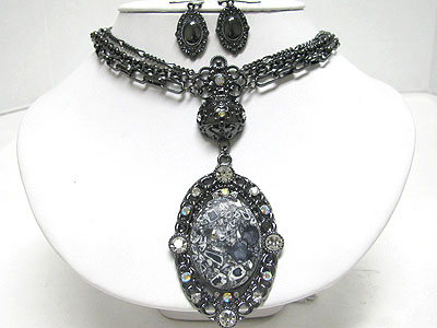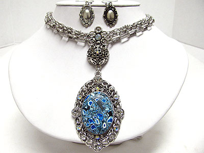 Boutique quality oval stone and crystal deco multi chain necklace set