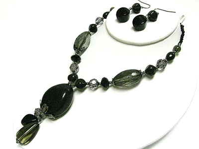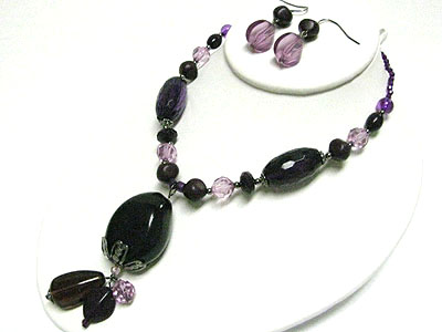 Multi facet beads y drop necklace earring set