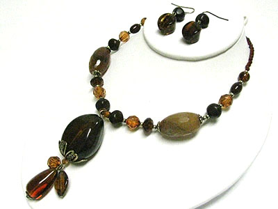 WHOLESALE MULTI FACET BEADS Y DROP NECKLACE EARRING SET 349039