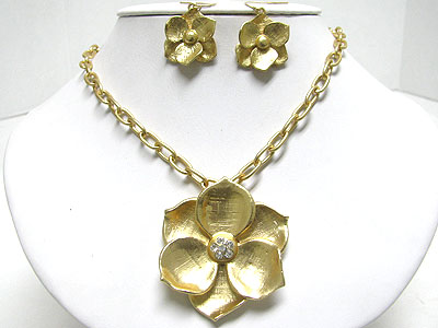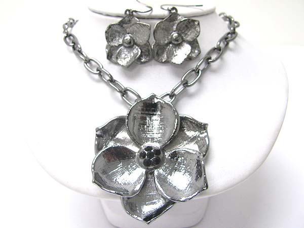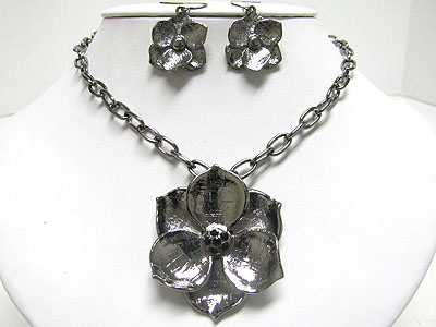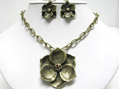 WHOLESALE BURNISH METAL FLOWER PENDANT CHAIN NECKLACE SET 349086