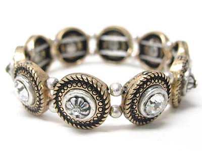 WHOLESALE CRYSTAL STUD TEXTURED ROUND METAL STERETCH BRACELET 349211