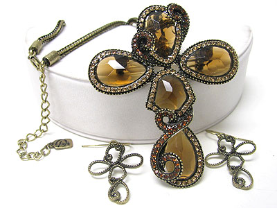 Crystal and facet glass deco cross pendant necklace set