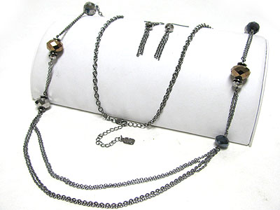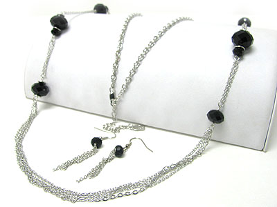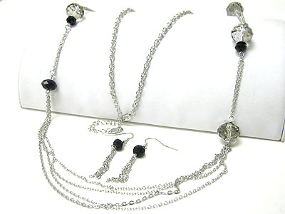 WHOLESALE FACET CRYSTAL BEADS AND CHAIN LINK LONG NECKLACE SET 349389