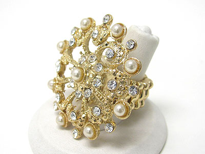 WHOLESALE CRYSTAL AND PEARL BEADS FLOWER STRETCH RING 349419