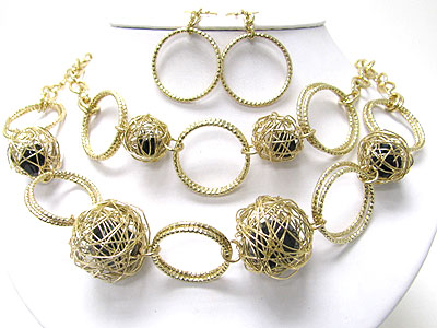 WHOLESALE METAL WIRE WRAPPED BALL AND HOOP LINK NECKLACE SET 349428