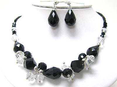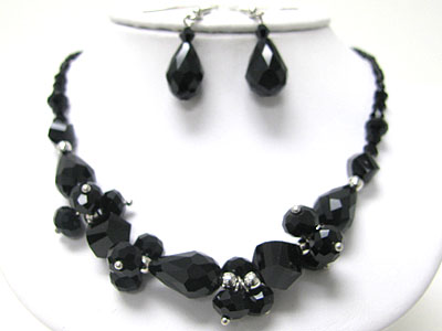 Crystal cut facet glass dangle necklace set