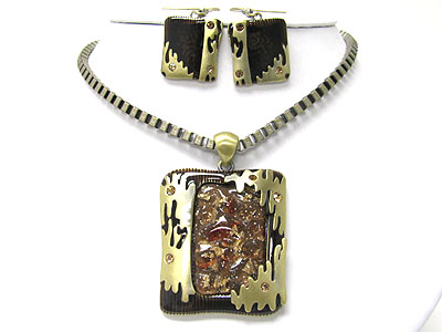 Metal and glss art work pendant and box chain necklace set