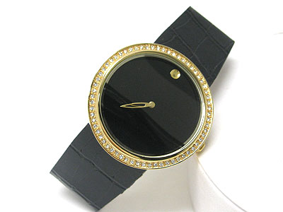 WHOLESALE CRYSTAL FRAME SIMPLE ROUND FACE LEATHER BAND WATCH 349523