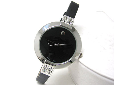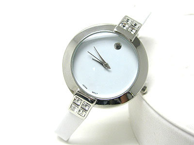 WHOLESALE BARGUETTE CRYSTAL SIDE SIMPLE ROUND FACE LEATHER BAND WATCH 349533