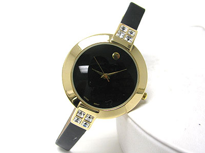 Barguette crystal side simple round face leather band watch