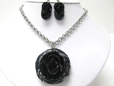 WHOLESALE ACRYLIC LARGE FLOWER PENDANT NECKLACE SET 349536