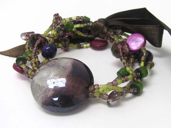 WHOLESALE MURANO GLASS AND RIBBON TIED MIXED SEED BEADS STRETCH BRACELET 349580