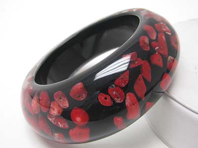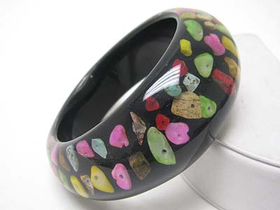 WHOLESALE MIXED NATURAL CHIP STONE INSIDE ACRYL BANGLE 349636