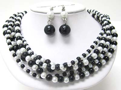 Multi strand pearl beads necklace and earring set