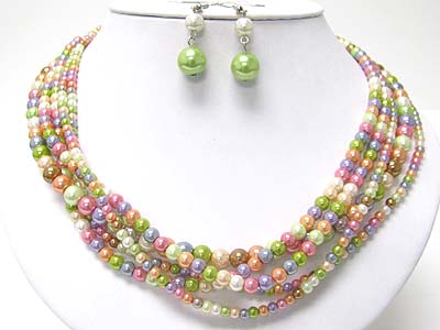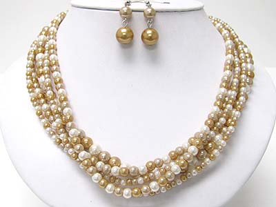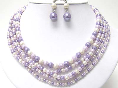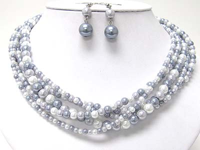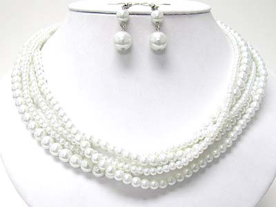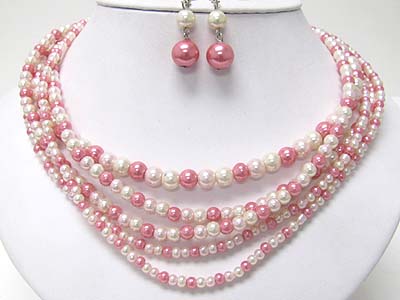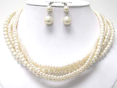WHOLESALE MULTI STRAND PEARL BEADS NECKLACE AND EARRING SET 349640
